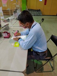 南區區長和福平里長宣傳重陽禮金匯款方式