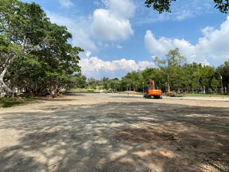 建設局長陳大田表示,后里森林園區是「2018年台中世界花卉博覽會」主展區,此次優化的區域為當時的國際庭院展區,配合佈展鋪設木棧板緣故造成草皮生長狀況不佳、石頭遍佈導致地面不平;經過市議員陳本添的努力與孟申機械無私幫助下,面積約2,000平方公尺的地面,已變身平整的翠綠草皮。