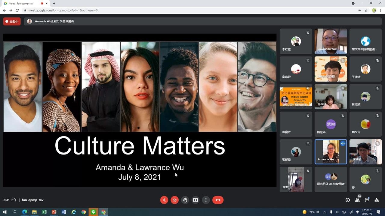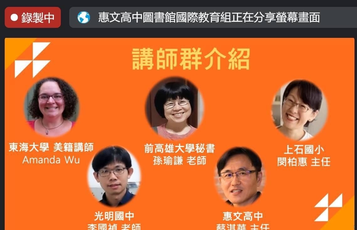 台中市政府教育局為培育未來可擔任接待家庭的人員,委請惠文高中主辦「台中市第三區接待家庭理念與實務線上研習」,邀請東海大學美籍講師Amanda Parmley Wu、前高雄大學秘書孫瑜謙教授、西屯區上石國小主任閔柏惠、惠文高中主任蔡淇華及光明國中教師李國禎分享東西方文化衝突與擔任接待家庭注意事項,吸引90多名教師參與,期盼疫情結束恢復實地跨國交流後,可立即接待外國學生赴台中。