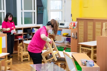 因應7月27日疫情警戒降為二級,台中市幼兒園全面為復課做好整備,市長盧秀燕今(23)早前往安和非營利幼兒園視察,督促幼兒園做好量體溫、噴酒精、戴口罩、中餐及點心時間需設置隔板及每日環境清消等防疫措施。盧市長表示,市府因應中央鬆綁指引提前盤點資源,「不會為解封而解封」,將採取「穩健式鬆綁、漸進式解封」原則,一切「小心翼翼」推動,守護幼兒及教師安全。