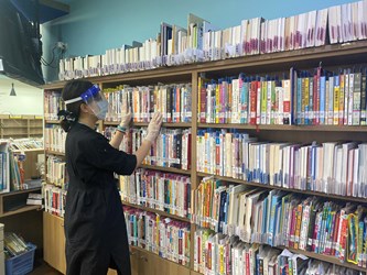圖書館服務台設置隔板,降低讀者與館員的接觸風險