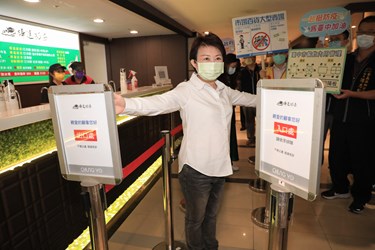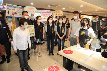 盧市長也感謝業者配合,原本中友百貨美食街可容納600人,但降載至160人,賣場並設置社交距離管理員宣導顧客保持1.5公尺的安全社交距離,以及所公告的容留人數等防疫指引。