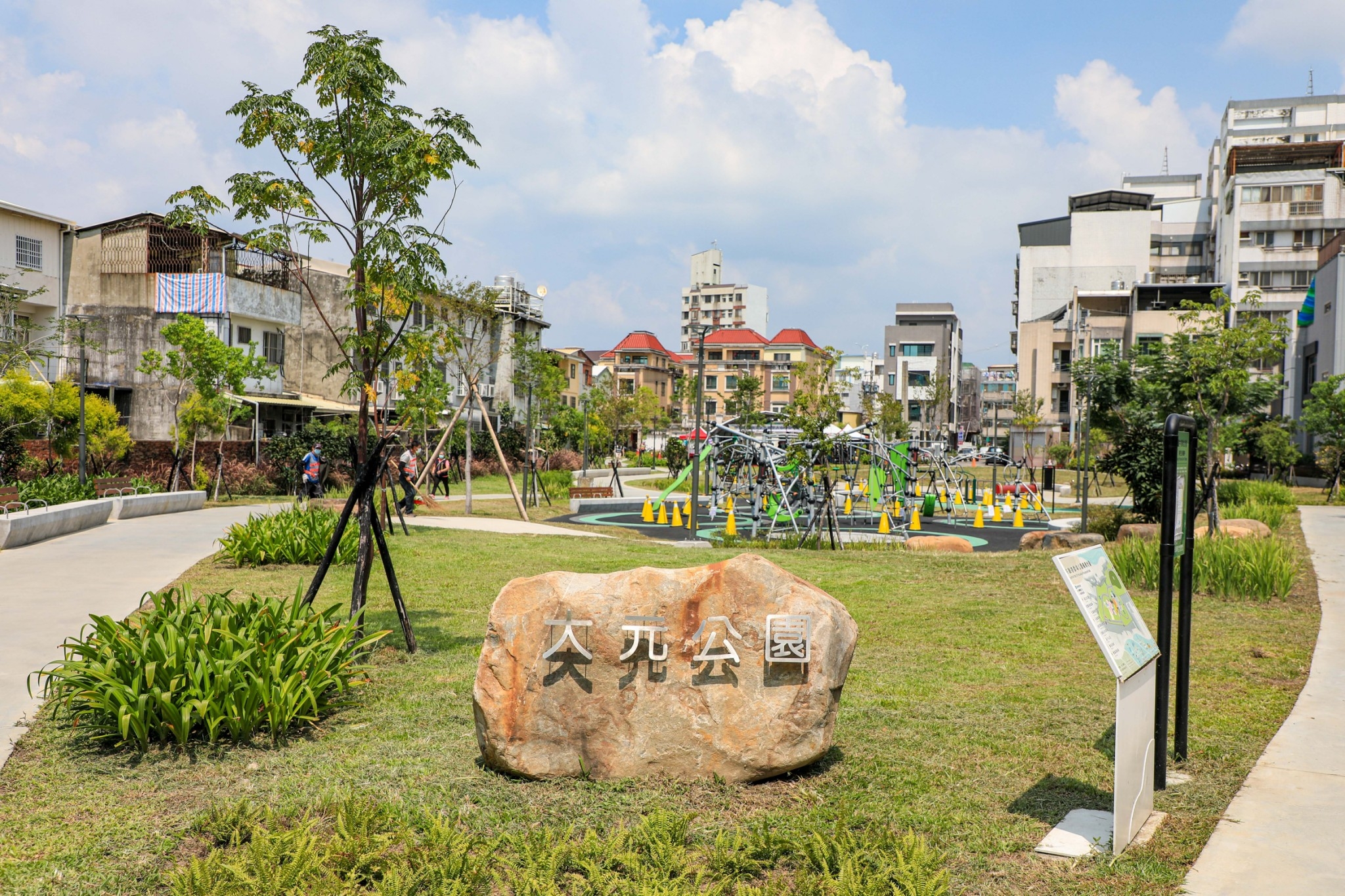 台中市政府建設局積極推動「台中美樂地計畫」,提供友善、舒適的公園綠地,其中大里區大元公園已完工,開闢面積約5,500平方公尺,工程造價約2,230萬元,全區鋪面順平無障礙,景觀設計融入大里「杙」(讀音同亦字)、鹹菜桶等在地特色,並設置可供輪椅族群使用的共融旋轉盤。市長盧秀燕今(16)日視察表示,這是座共融公園,各世代民眾都可使用,盼透過公園新建整修,讓市民享受美好生活環境。