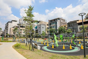 此外,建設局也邀請設計學院老師、遊具設計者、地方使用者及兒童、身心障礙團體等不同族群參與設計工作坊,由設計單位統籌整合跨領域意見,以全共融為訴求,除設置綜合攀爬遊具、鳥巢式鞦韆外,更顧及身障者與幼童遊玩權益,設置輪椅式旋轉盤及可供3歲以下孩童使用的包覆型鞦韆,打造以人為本的友善環境,成為大元里首座共融式公園。