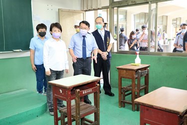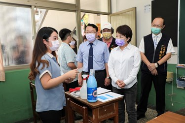 盧市長今(18)日在教育局長楊振昇、僑泰高中校長温順德、僑泰高中主秘許富雄陪同下,前往僑泰高中視察開學防疫措施,逐一檢視教室午餐隔板設置、庫房防疫物資整備狀況、洗手設施及健康中心規劃情形。盧市長說明,台中市轄屬各級學校及幼兒園人數將近40萬人,防疫物資整備數量相當龐大,市府考量多數高中職以下學生非疫苗接種對象,在學生尚未有防護力狀況下,市府提早準備,全面保護教職員及學生,也感謝學校提早整備及配合;為保護學生安全,她也呼籲家長及外界人士勿進入校園,若有需求可至校門警衛室登記傳達,讓疫情風險降到最低。