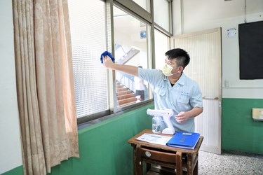僑泰高中校長温順德表示,因應開學日到來,針對防護衣、口罩、酒精、漂白水等防疫物資皆整備完畢,教室每日由2位值日生至學務處領取次氯酸水,負責消毒經常觸碰的門把、窗戶、講台,同學中午用餐完畢後,值日生也會將課桌椅消毒,放學後再以漂白水全面清潔教室內外。