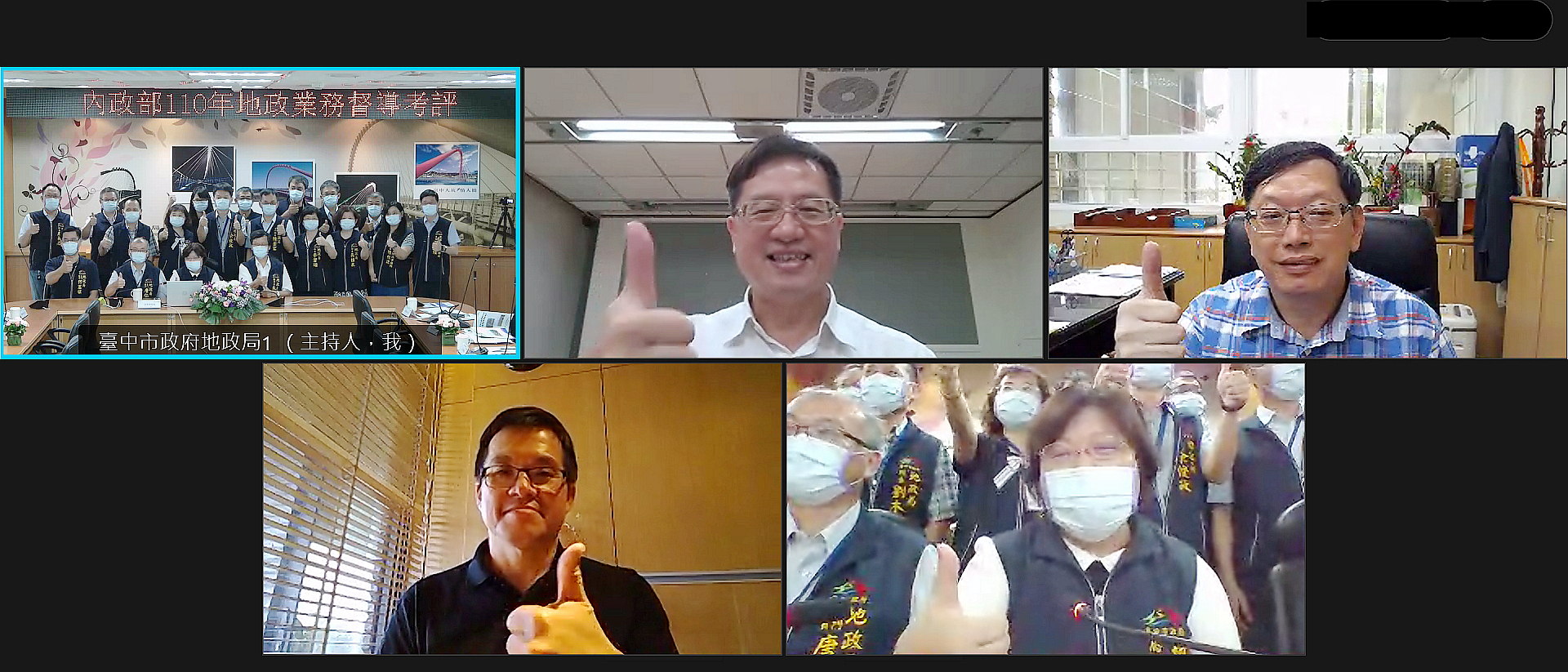 110年度內政部針對各直轄市、縣(市)政府地政業務辦理督導考評,今(26)日地政司長王成機與逢甲大學陳建元教授、屏東大學黃名義副教授等2位委員,以視訊會議辦理綜合整體表現類別考評,台中市政府地政局依循12大施政發展策略,以「智慧地政 地利共生」為願景,8大策略目標為主軸,提出共40項地政業務相關創新提案,其中25項為全國首創,受委員一致肯定。