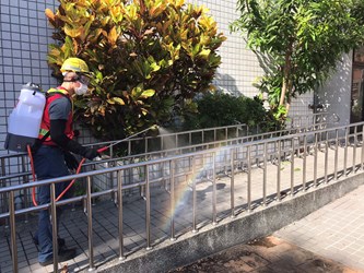 西屯區漢口國中陳老師說,大部分學生3個半月未到校上課,雖使用線上教學,但沒有真實接觸的人際互動,所以都很期待返校。看到清消人員仔細的消毒,自己也安心了不少,非常感謝環保局的全力支援。除了學校已預先準備各式各樣的防疫配備,自己也備妥充電式酒精噴霧槍,定期加強教室環境消毒作業。
