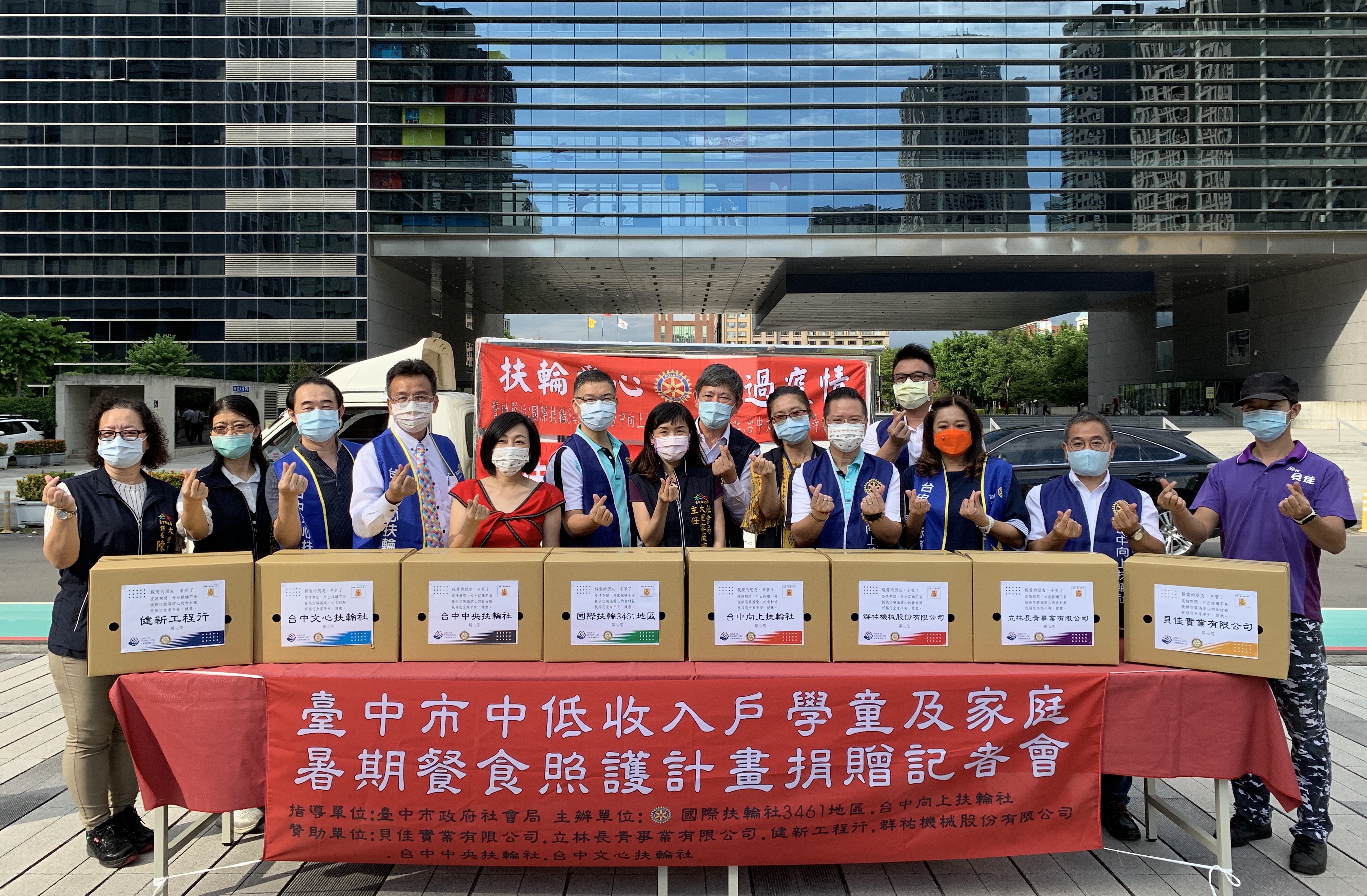 關懷弱勢家庭,台中市政府社會局與台中向上扶輪社聯手推動「中低收入戶學童與家庭暑期餐食照護計畫」,於7、8月結合社友及善心人士,配送愛心食物箱給太平區、大里區計500戶中低收入戶家庭,安頓600位弱勢學生生活,將持續給予弱勢家庭更多關懷與溫暖,共度過疫情時刻。