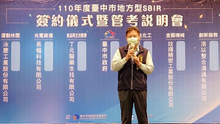 提攜中小企業創新研發,台中市政府經濟發展局今(9)日舉行「110年度地方產業創新研發推動計畫(地方型SBIR)」簽約儀式暨管考說明會,今年優化線上收件系統提升效率,開放創新服務、金屬機械、民生化工、食品與生技醫療、光電資通與運動休閒六大領域,因應疫情改變人們的生活習慣,今年以穿戴裝置結合遠距科技應用,成為多數申請案創新亮點,掌握未來衍生的龐大新商機。