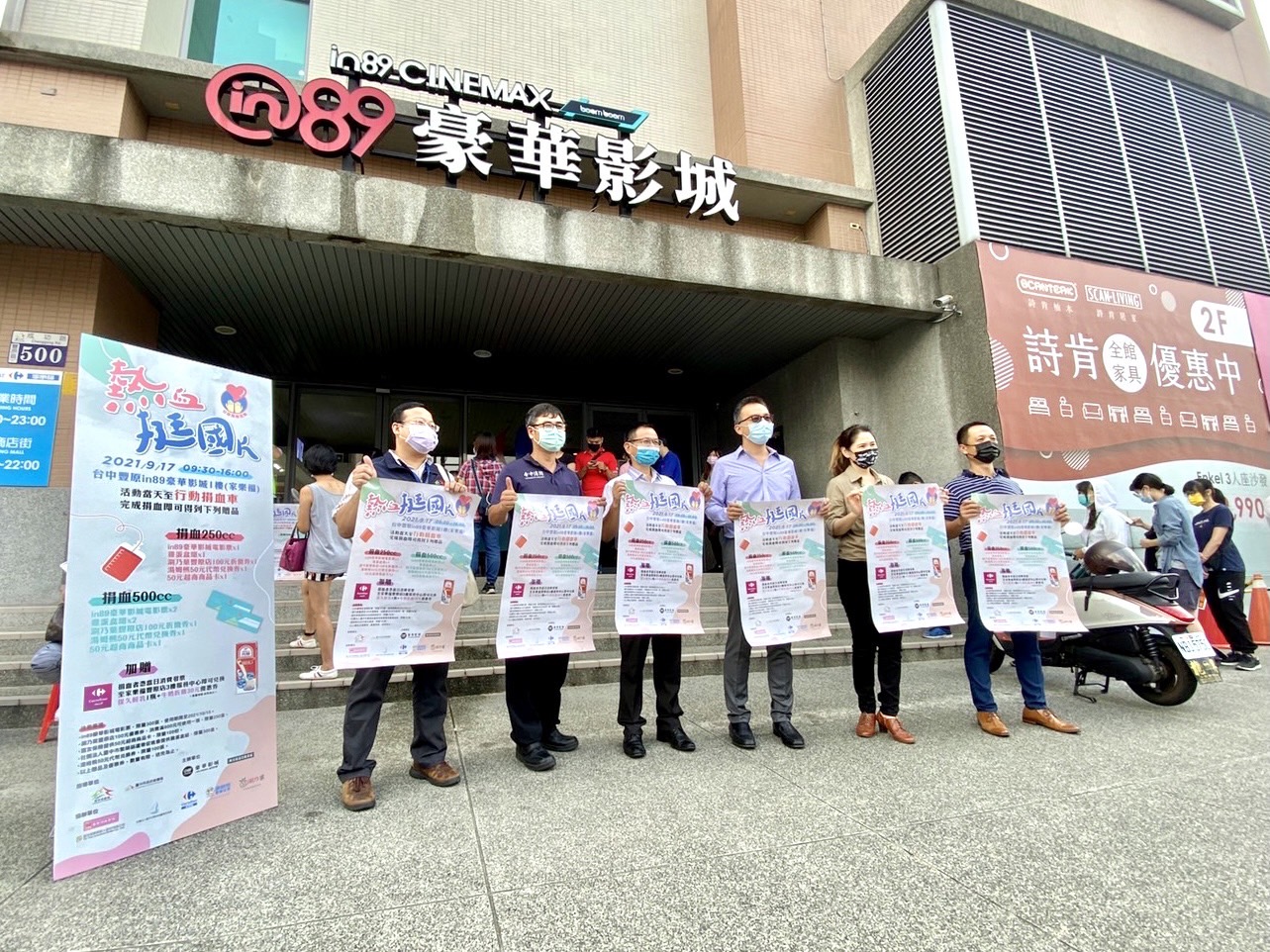 新聞局表示,受疫情影響,嚴重衝擊全台影視產業,台中市電影院業者為提供影迷良好的觀影環境,努力嚴守防疫規範,維持營運量能;感謝台中豐原in89豪華影城積極與在地企業及團體合作,促成此次公益捐血活動,新聞局也補助電影票來回饋民眾,讓影迷們在嚴謹的防疫措施中,分流進戲院支持國片;也感謝許多在地團體慷慨贊助捐血伴手禮,加碼送出商場折價券、雞蛋盒組、超商商品卡等好禮。
