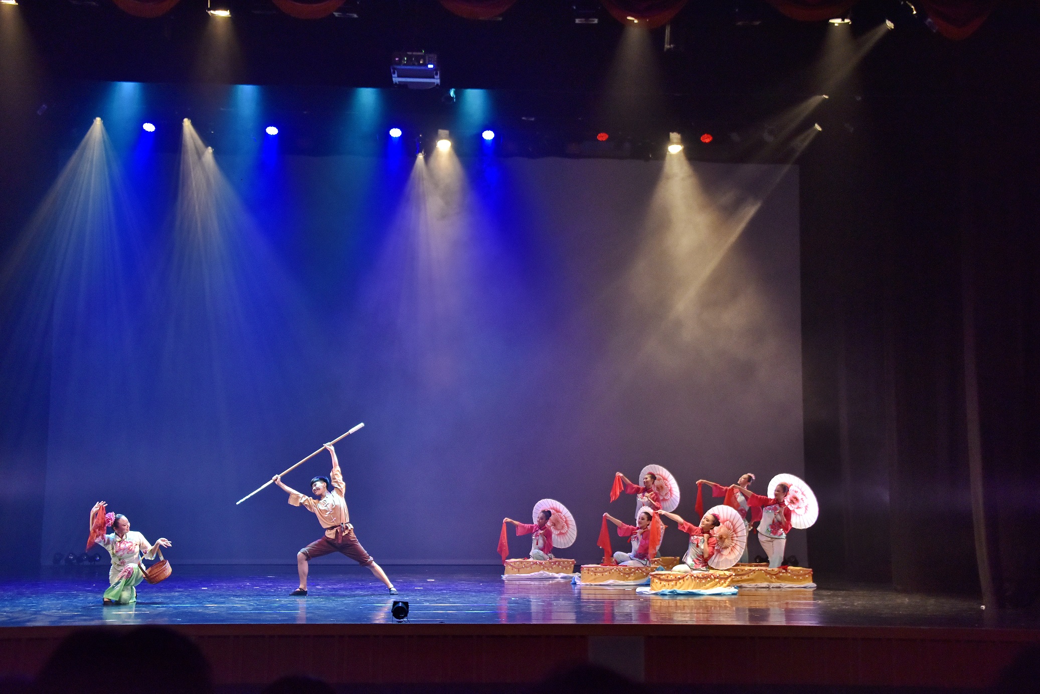 國內疫情警戒二級延長,台中市政府文化局全力協助藝文產業振興復甦,今(19)日由台中市傑出演藝團隊「妙璇舞蹈團」和「九天民俗技藝團」跨界打造《廟會劇場》,在港區藝術中心帶來舞蹈結合藝陣和鼓樂的精彩演出,展現演藝團隊面對疫情挑戰,仍持續創新突破的藝術能量。