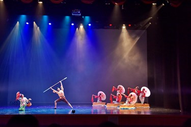 洪團長說,《廟會劇場》以「媽祖信仰文化」為創作核心,演出由神聖肅穆的開台秀以及眾神遶境意象揭開序幕,緊接著家將、戰鼓、傳統文武藝陣、官將首輪番演出,最後由九天最具代表的鼓藝演出作為壓軸。震撼磅礡、強而有力的鼓聲,演繹出喜悅與祝福,將敬天謝地的精神傳遞給所有觀眾。