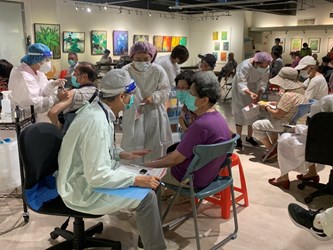 吳局長表示,「快打站1.0」全面撤離校園,各區公所積極尋覓適宜優質處所,升級「快打站2.0」優化接種服務,不僅有宗教團體主動出借場所並號召志工加入「快打站2.0」服務行列;還有文化局提供所屬藝文場域協助市府推展疫苗施打,並且動員市府各局處及區公所同仁全力協助接種,感謝市府團隊全體同仁及民間宗教團體總動員,齊心協力共同抗疫守護市民,提升疫苗完整保護力。