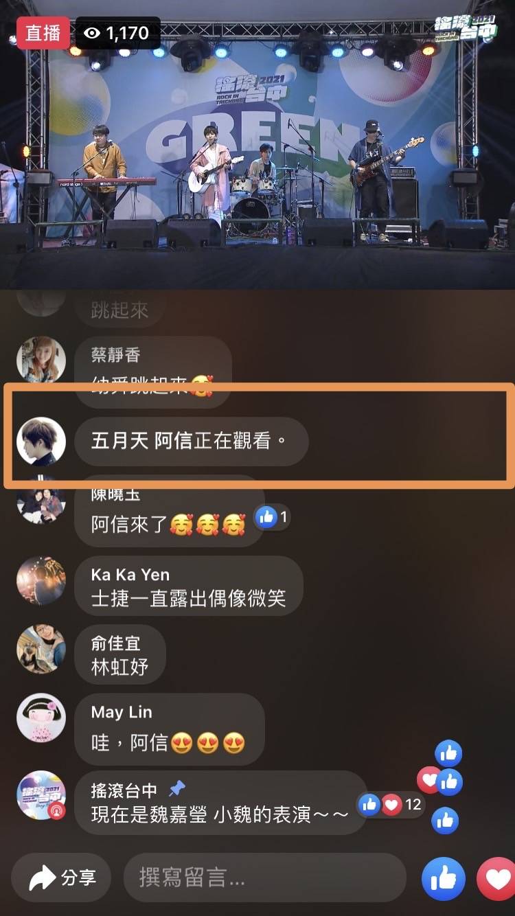 五月天阿信也上線觀看 30萬人次參與搖滾台中