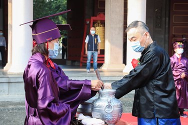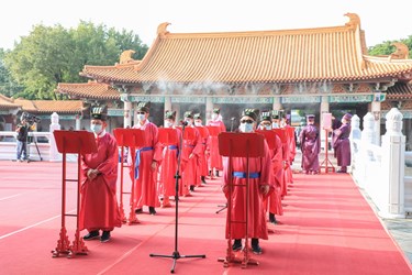 (28)日是教師節,也是至聖先師孔子誕辰紀念日,台中市孔廟舉行「台中市各界紀念孔子誕辰2571周年祭孔典禮」,今年受疫情影響,取消力行國小佾生八佾舞演出及民眾現場觀禮,同時改採網路直播,並由副市長黃國榮擔任正獻官,以古禮瘞毛血、迎神、三獻禮等儀程獻祭。市府民政局表示,台中孔廟遵循三獻古禮,展現尊師重道的文化精神,體現豐富的人文美學與禮儀層次,讓優良文化永續傳承。