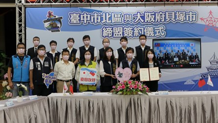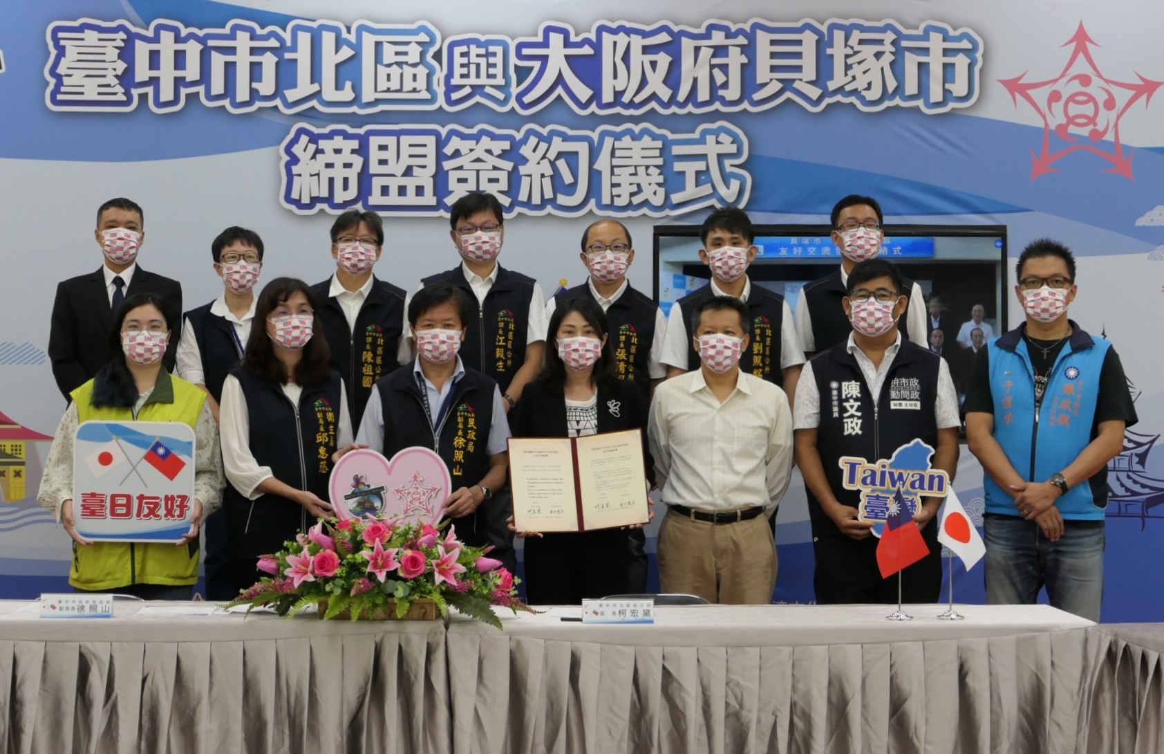 深化台日觀光、體育及教育交流,台中市北區與日本大阪府貝塚市昨(6)日透過視訊跨海締盟,由北區區長柯宏黛及貝塚市長藤原龍男簽署友好交流協定書。台中市政府民政局副局長徐照山代表市長盧秀燕出席見證。他表示,感謝日本多次對台援贈疫苗,彰顯台日人民同舟共濟的深厚情誼,期盼透過交流延續並加深台日各領域互動,促進彼此繁榮發展,共榮共好。