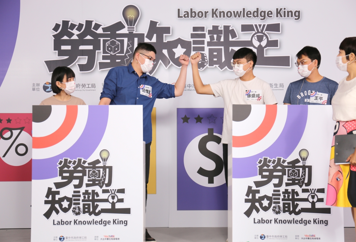 推動勞動法令知識向下扎根,台中市政府勞工局舉辦「勞動知識王」競賽活動,由國中組32隊、高中組22隊、大專暨工(公)會及公務機關組36隊參賽,經過激烈競賽,成績出爐,各組冠、亞及季軍各可獲得2萬元、1萬6千元及1萬2千元獎金。參賽者表示,學習勞動知識對於未來在求職及職場上很有幫助,會更加重視自身的勞動權益。