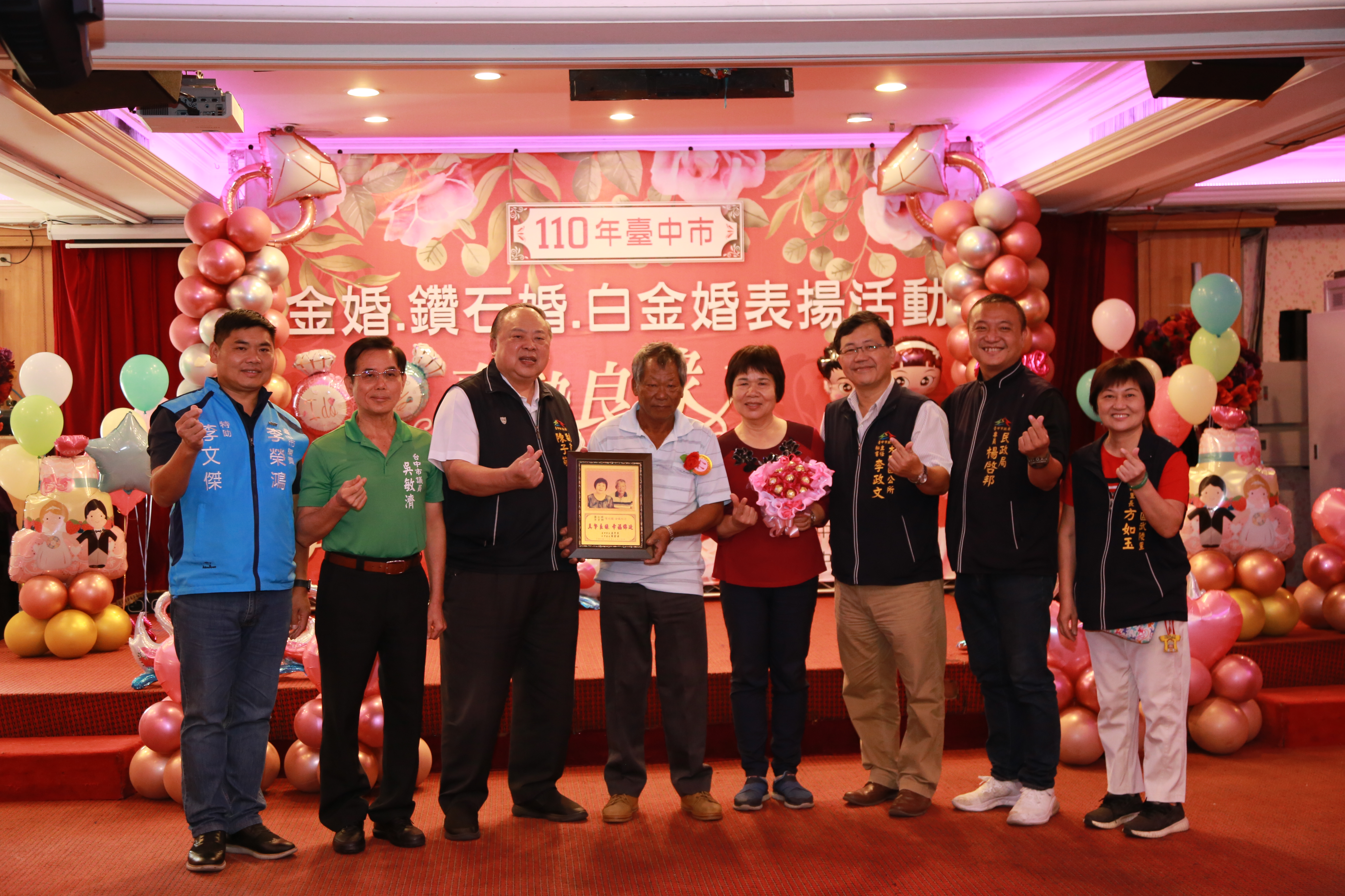 陳副市長表示,不管是白金、鑽石還是金婚都非常難得,大甲區今年有189對受表揚伉儷,大家都身體健康、家庭美滿,鶼鰈情深令人稱羨,祝福長輩們持續維持健康,與另一半白頭偕老、長長久久。