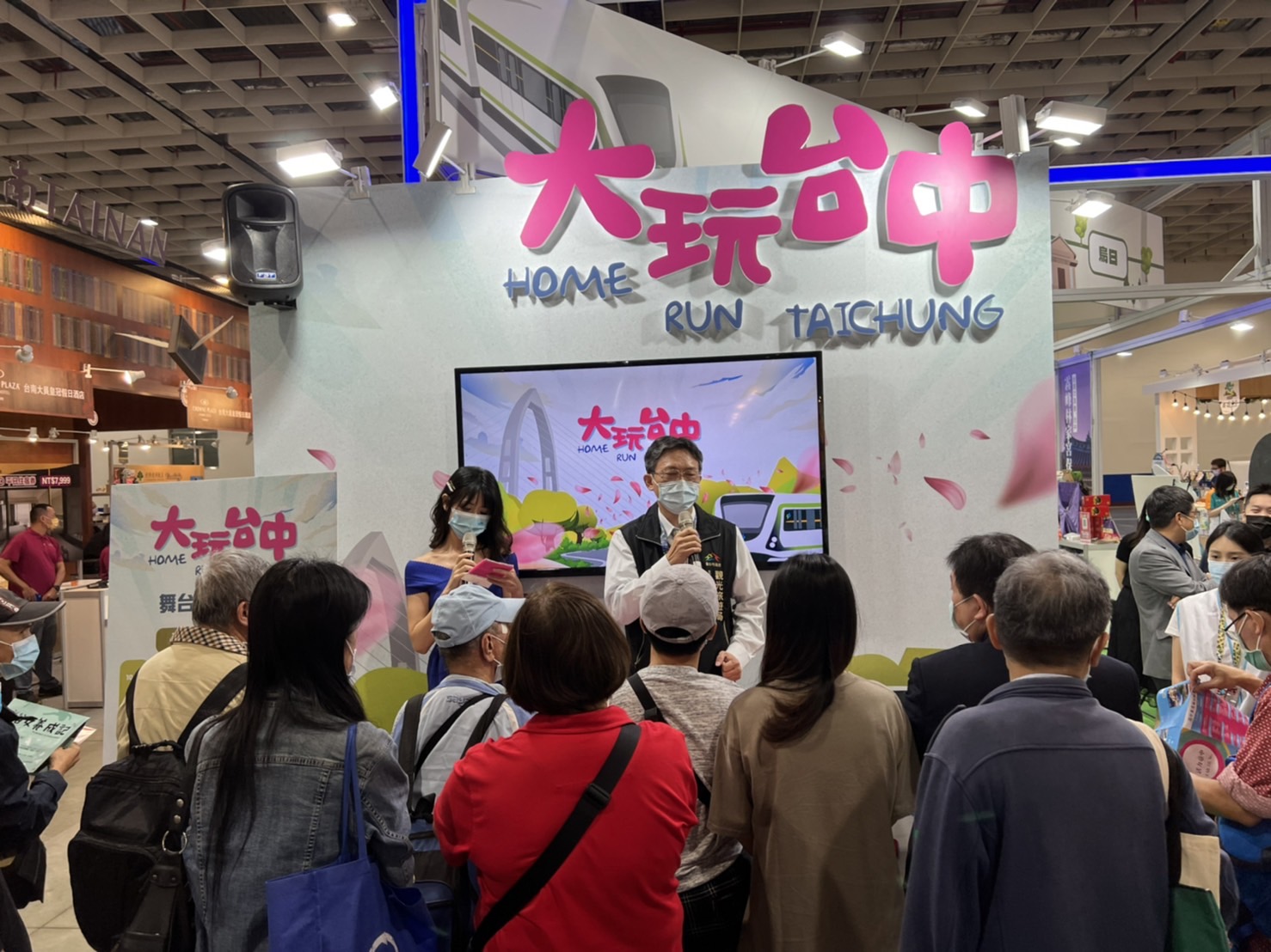 「2021 ITF台北國際旅展」今(5)日至11月8日連4天在台北南港展覽館盛大展開,台中市政府觀光旅遊局精心打造融合台中捷運元素「台中館」參展,開展後吸引許多民眾朝聖,觀旅局表示,明日下午2時將邀請台中地主中信兄弟隊「啦啦隊女神」峮峮前來台中館應援大玩台中,並與特色觀光業者共同推廣在地好物及精緻小農商品,展現拚經濟決心。