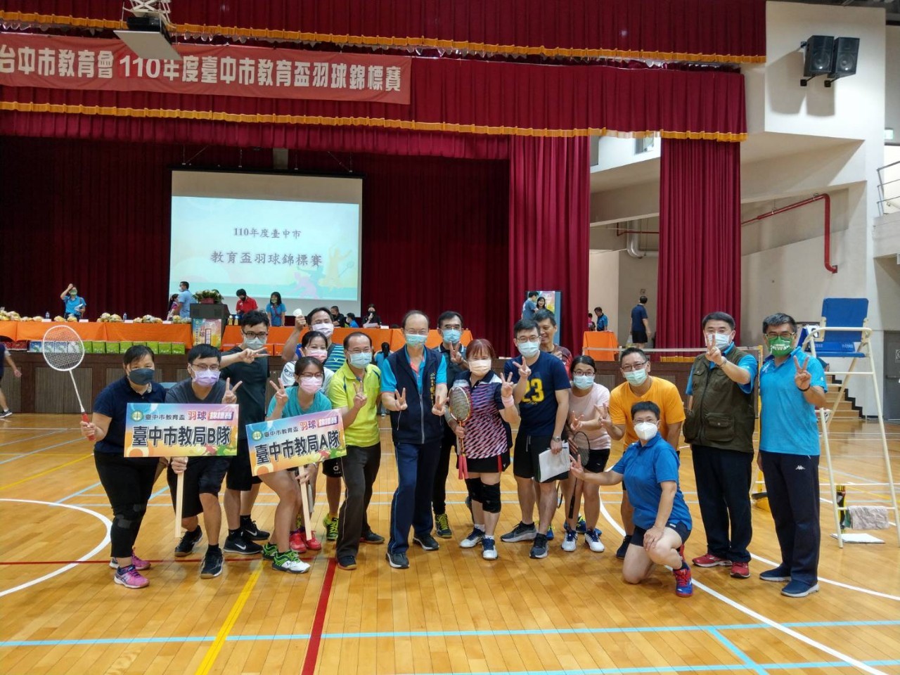 台中市教育會與台中市政府教育局共同主辦「110年台中市教育盃羽球錦標賽」今(6)日於台中二中體育館熱鬧登場,現場吸引許多活力十足、熱愛運動的教育行政人員與教師們參加。教育局長楊振昇也到場擔任領隊,帶領教育局2個隊伍參賽,以實際行動鼓勵教育人員參與運動、樂在生活。