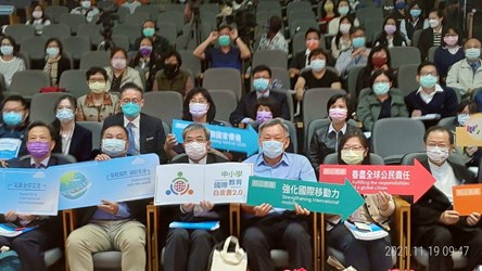今日交流論壇邀請教育部政務次長蔡清華、教育部國民及學前教育署副署長戴淑芬、教育部中小學教育國際化專案辦公室副執行秘書翁慶才、外交部研究設計會主任谷瑞生、國立台灣科技大學院長陳明志、台灣師大公民教育與活動領導系教授謝智謀、國立海洋科技博物館長陳素芬、親子天下雜誌總編輯陳雅慧、社團法人台灣海洋環境教育推廣協會秘書長郭兆偉、島內散步執行長邱翊等產官學民專家學者和學校師長,分享疫情下的實務國際交流推動模式及成果經驗。(11/19*6)*教育局