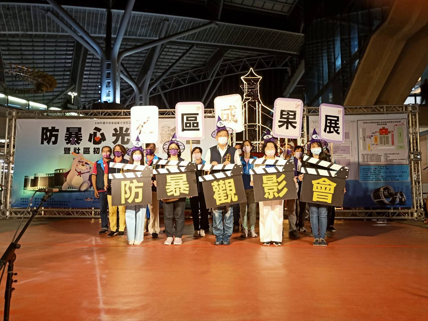 台中市去年結合外送平台,全國首創將防暴資訊宅配到府,外送箱張貼防暴資訊,外送員交餐時也會將資訊附上加強宣導。今年家庭暴力及性侵害防治中心委託中華民國書香關懷協會製作〈防暴零距離〉系列數位教材影片,響應1125日「國際終止婦女受暴日」,今(21)日在充滿台中驛鐵道文化園區舉辦「防暴心光觀影會暨社區初級預防聯合成果展」,邀請市民觀賞,並安排闖關遊戲、DIY活動等,宣導正確防暴觀念。