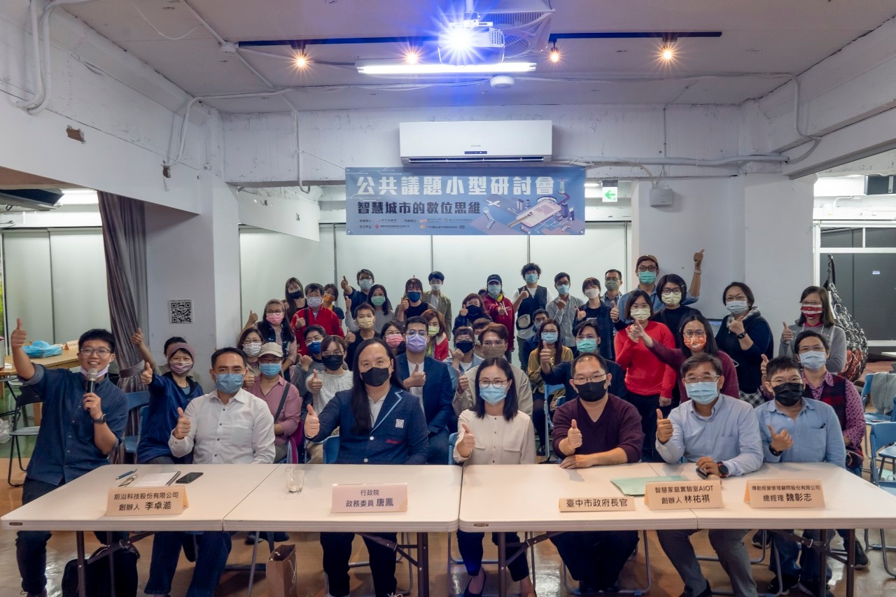 數位科技如何改變居家生活,甚至運用在城市治理?台中市政府社會局日前於社會創新實驗基地舉辦「智慧城市的數位思維」公共議題小型研討會,邀請行政院政務委員唐鳳、智慧家庭實驗室創辦人林祐祺與前沿科技創辦人李卓澔,討論智慧物聯網、AI技術等數位科技趨勢,超過50位市府人員及進駐團隊夥伴一同參與。