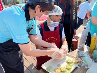 身心障礙者福利關懷協會理事長趙子妍指出,協會附設的微笑天使烘焙坊攤位,設有牛軋餅DIY活動,由身障青年帶領民眾製作「微笑天使33牛軋餅」,希望透過體驗讓社會大眾了解身障者學習歷程的艱難,促成社會融合,感受幸福與微笑。