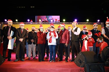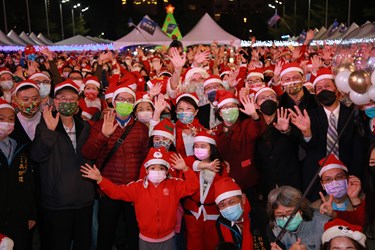 由台中市政府民政局舉辦的「2021台中好聖誕-予愛同在」平安夜聖誕晚會,今(24)晚在台灣大道市政大樓府前廣場登場,邀集1001位聖誕老公公歡唱活動主題曲「聖誕哇嘎哩」,並至百貨商場、社區鄰里報佳音,市長盧秀燕也出席與現場大小朋友齊唱耶誕詩歌,迎接幸福耶誕夜,共同為台中祈福。