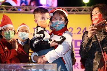 民政局說明,「2021台中好聖誕」現場闖關抽獎獎項於晚會同步抽出,並由盧市長親自抽出活動頭獎價值近4萬元的iPhone 13 pro 256G,5歲的李小弟弟幸運獲獎,由盧市長現場親手頒贈頭獎,現場氣氛歡樂。此外,晚會活動壓軸在1001位聖誕老公帶著平安與祝福前往百貨商場、社區鄰里報佳音,透過歌曲與發送糖果、聖誕卡等小禮物,將聖誕氣氛與祝福傳遍城市各個角落。