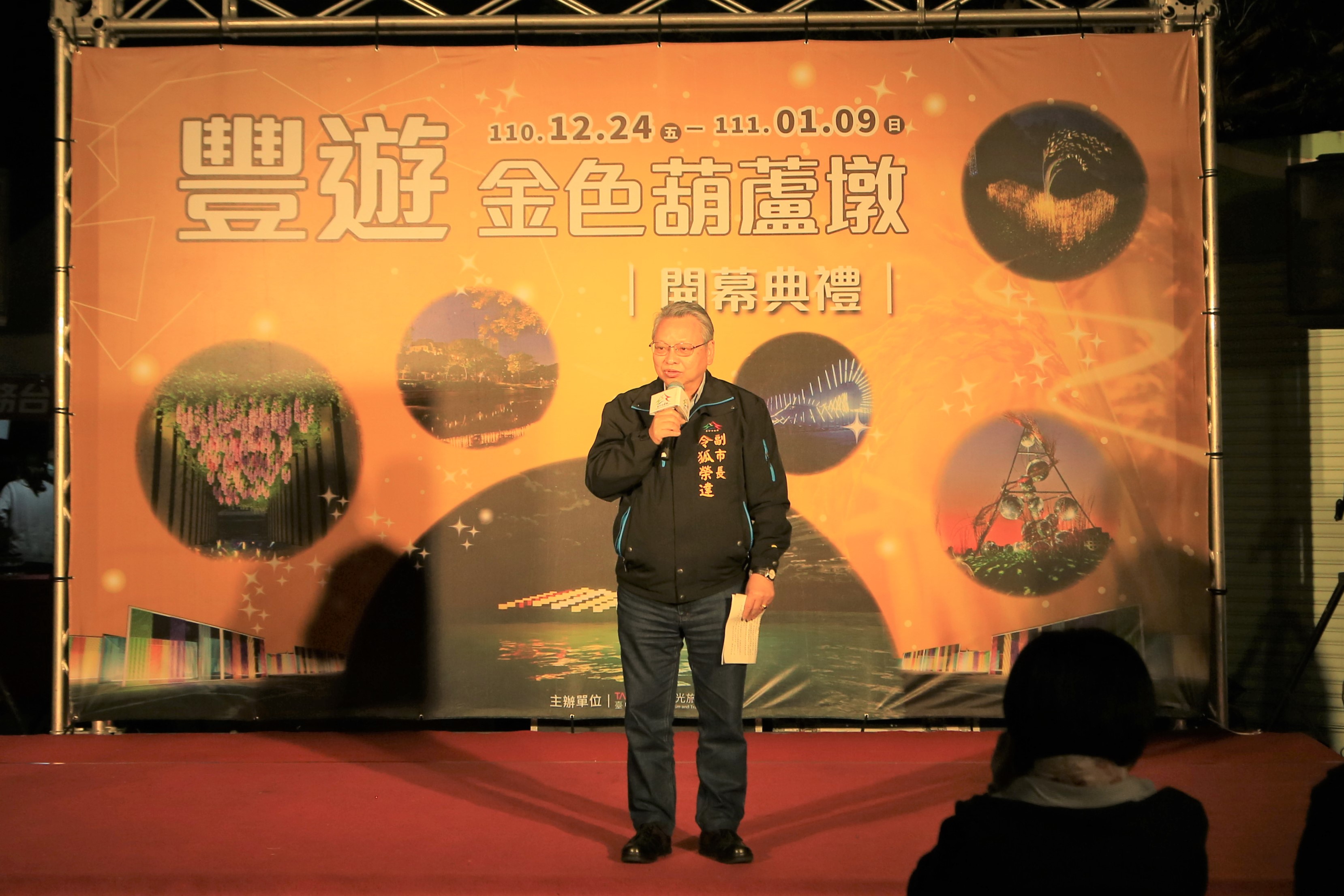 「全城亮起來!」令狐副市長指出,從耶誕節、新年元旦、農曆春節到元宵節這一段時間,市府各局處團隊一起努力,在都會區、屯區、海線、山城都有佈展裝置藝術燈飾,讓大家覺得有溫馨幸福的感覺。豐原的葫蘆墩公園是台中市最大的河濱公園,在花博時期曾做過展覽場,此次觀旅局舉辦「金色葫蘆墩」光藝術展演,在第四區跟第五區共有八座的藝術燈飾,河岸美麗的裝置,配合上光影、光環境、音樂以及無人機的展演,「非常有看頭」。