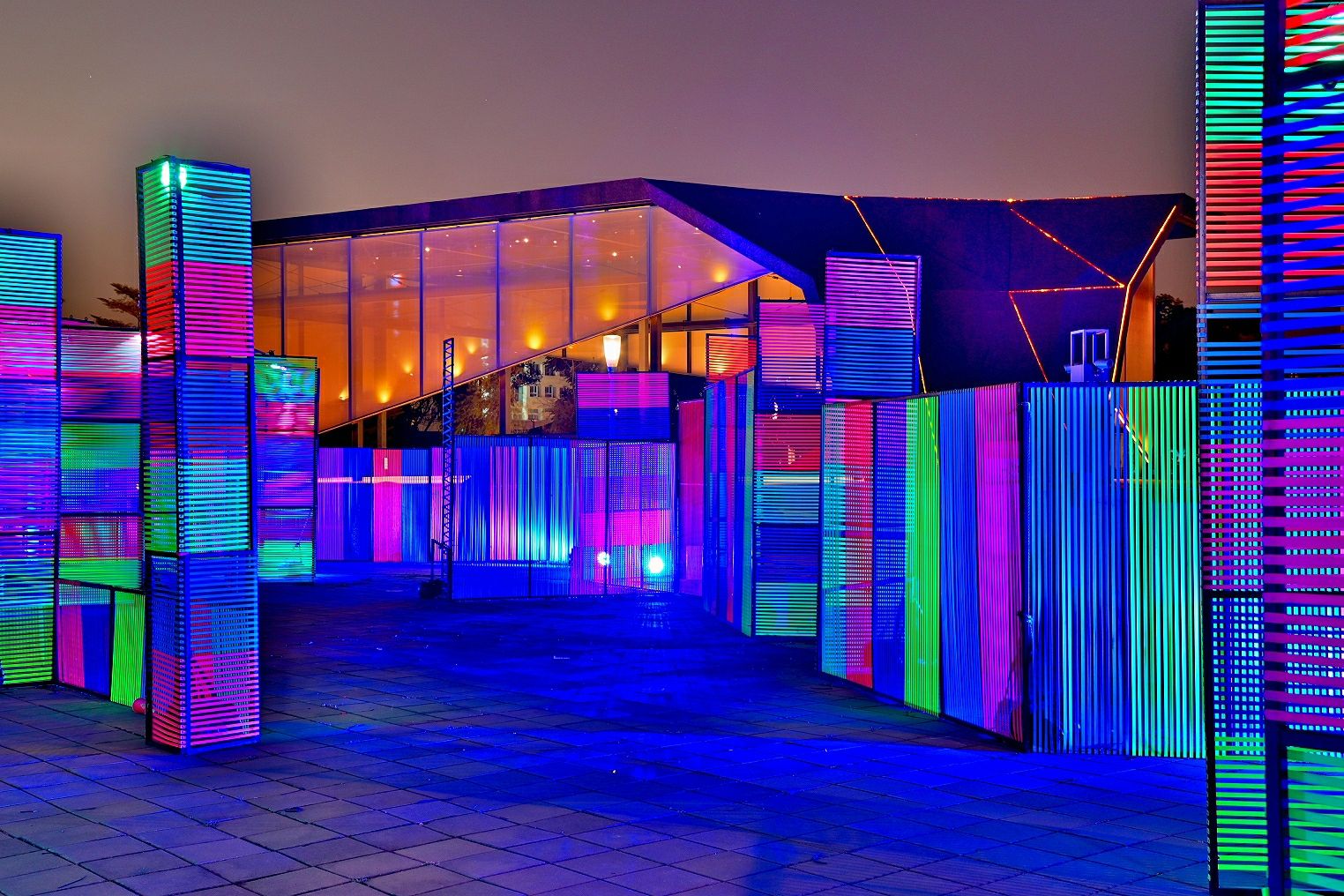 此外,位於第四區的作品「織緒」,將遠在他鄉遊子的思念化為力量,編織成一座座牆堵,每一種顏色代表著種種思緒,在充滿希望與喜悅的聖誕季節,亮麗的色彩也象徵了在疫情過後將迎來更美好、更亮麗的未來! 為冷颼颼的冬日,注入想像與希望。葫蘆墩公園光藝術展演利用原生地貌帶來撫慰人心的感動,透過燈光讓人漫步於月下豐原夜色、回味豐原人文歷史,在後疫情時期進一步傳達充滿希望的亮光就在不遠處的信念。