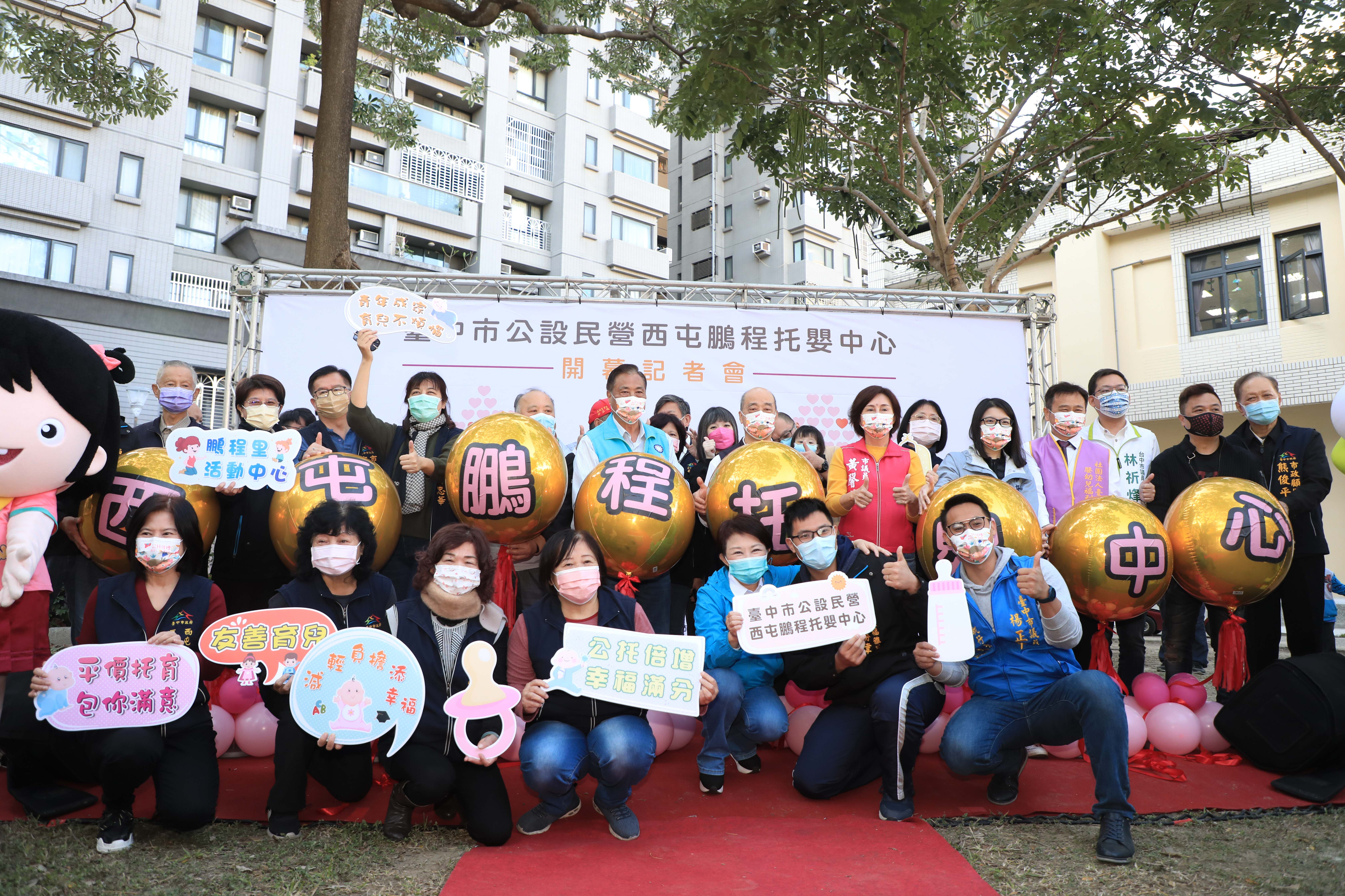 盧市長指出,西屯鵬程托嬰中心是台中市第18座公托,3年內台中市公托數量已經超越3倍增,落實公托倍增目標,市府持續編列預算,同時爭取中央補助,未來繼續努力提供安全、舒適、快樂及友善的托育環境。