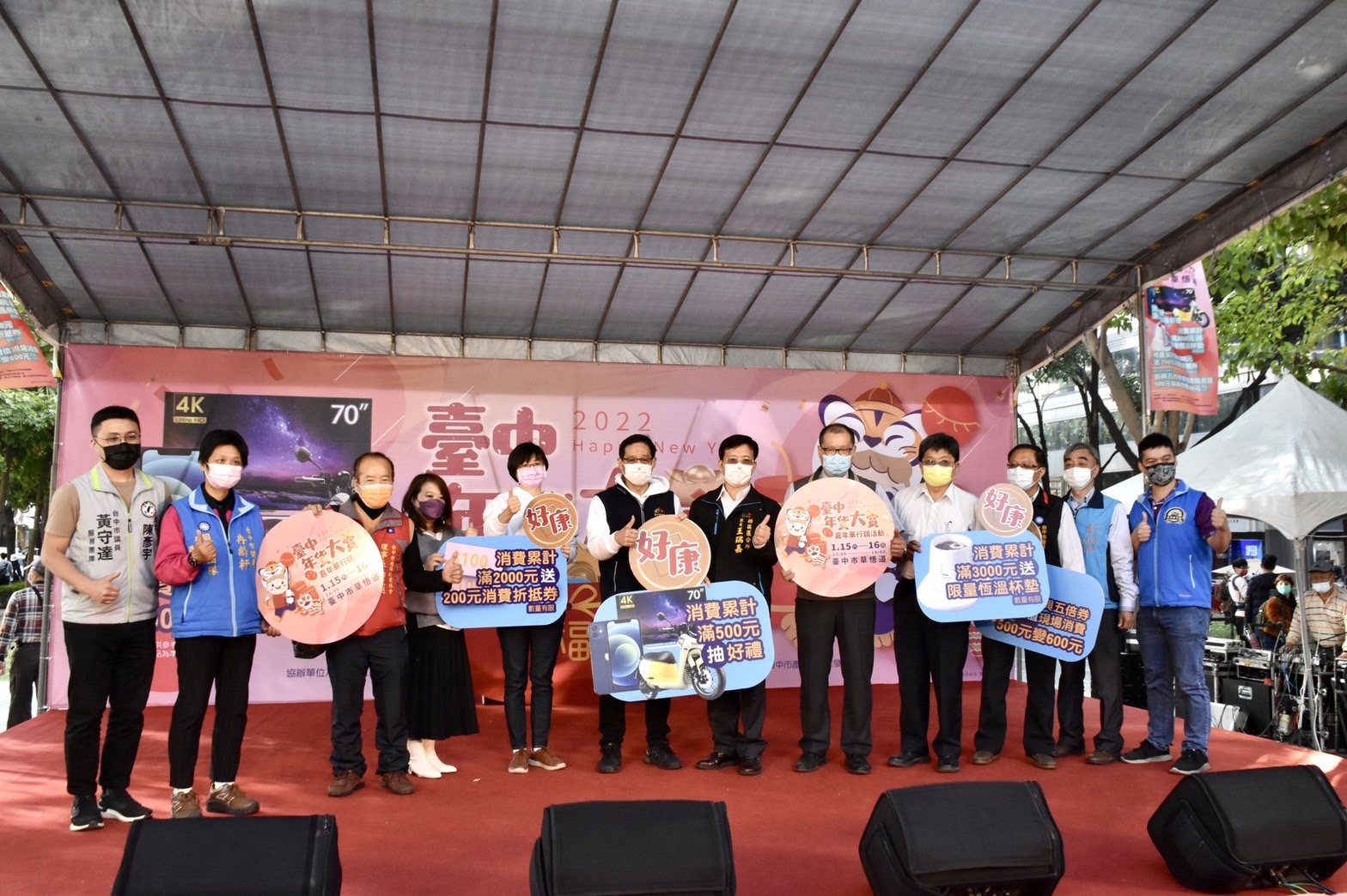 經發局表示,去年中央發振興五倍券後,市府已推出一連串行銷活動響應政策,這次為鼓勵民眾把剩下紙本振興券拿出來消費,除部分店家提供相關優惠外,還要直接讓振興券增值放大,民眾持500元紙本振興券可兌換600元消費折抵券,每日限100名,手上還有紙本券的人千萬別錯過!活動首日邀請到創作歌手魏嘉瑩演唱歌曲,與粉絲朋友進行互動,並穿插Live band演出營造愉悅氛圍,現場店家也將上舞台展開指定商品限時搶購,不僅好逛好買還很好玩,活動只到明日,歡迎大家趁周末一起來賞年貨、辦年貨。更多活動詳情請見台中市政府經濟發展局網站(http://www.economic.taichung.gov.tw/ )。