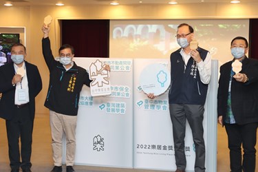 今日啟動儀式,由都發局長黃文彬及住宅處長陳全成,共同揭開象徵2022台中樂居金獎雙年獎正式開跑的樂居好書,另因首次舉辦雙年獎,總獎金達140萬!為提高社區參與,特別邀請台中市公寓大廈管理維護相關團體「台中市不動產開發商業同業公會」、「台中市大台中不動產開發商業同業公會」、「台中市公寓大廈管理維護服務商業同業公會」、「台中市公寓大廈管理服務職業工會」、「台中市物業管理協會」、「台中市物業管理學會」、「台中市大樓社區協進會」、「台灣物業跨界學會」、「台灣建築發展學會」、「台中市保全商業同業公會」等共襄盛舉。
