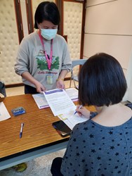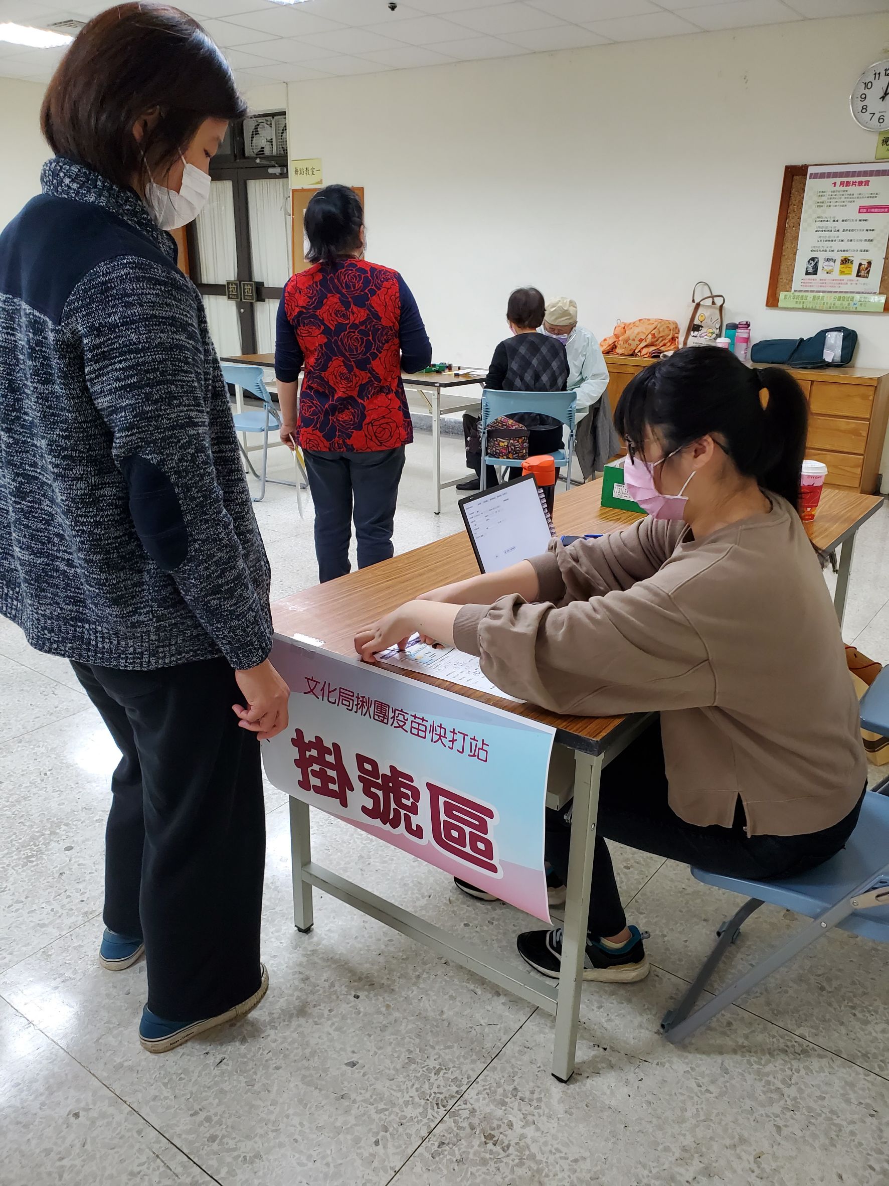葫蘆墩文化中心揪團預計明日開打,揪團對象為山、海、城區文化志工及藝文團隊。志工隊長鄭芬宜說,透過揪團接種方式,許多夥伴值勤後就可以直接到場施打,年長志工也不需要自己奔波久候,還能彼此陪伴照應,可說是五星級服務。葫蘆墩文化中心更特別準備媽祖御守贈送完成接種的志工,庇佑大家新的一年平安健康。