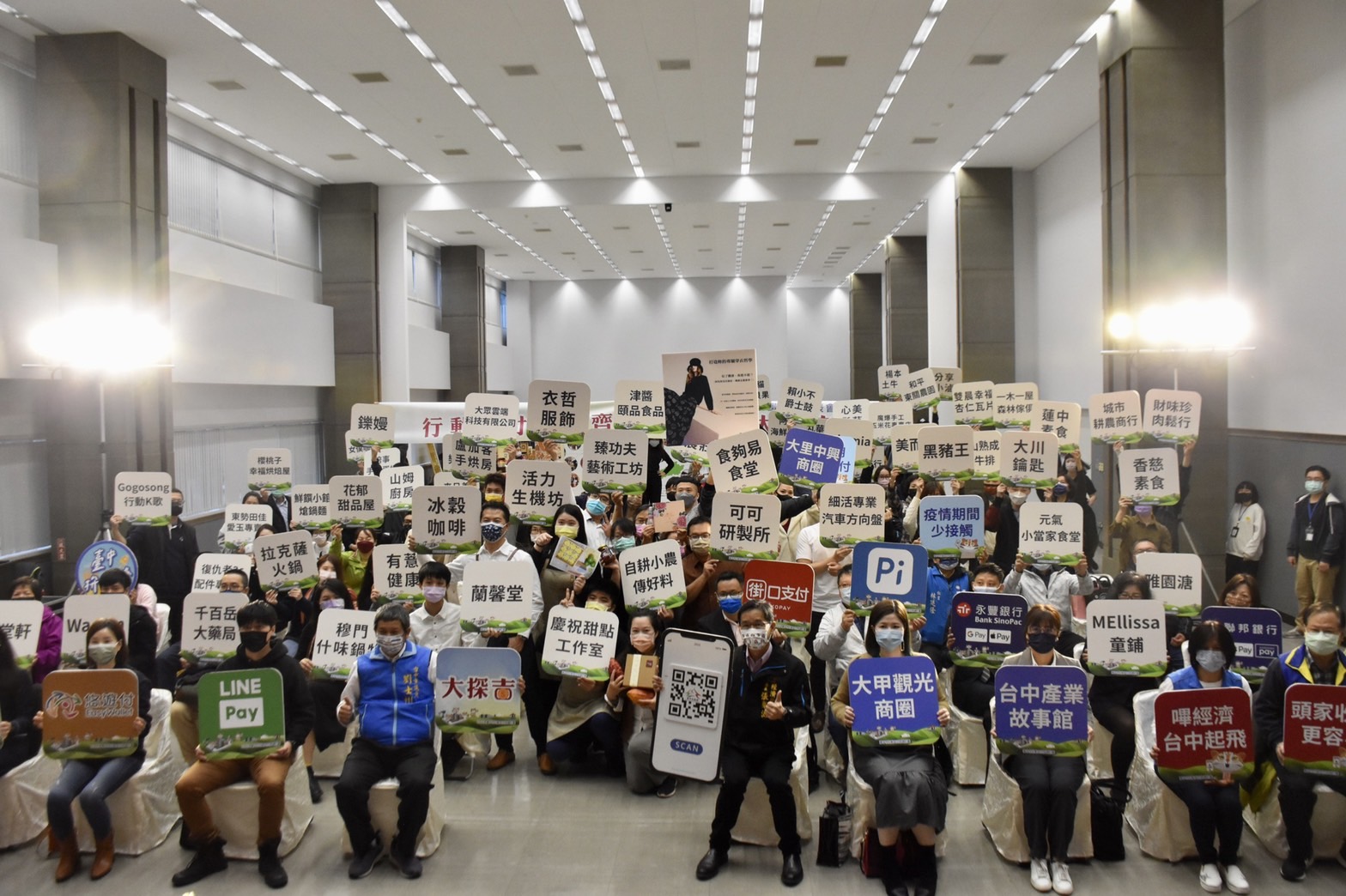 今日記者會包括經發局長張峯源、市議員劉士州、工策會總幹事黃于珊、台中市商圈觀光文化產業聯合會總幹事郭達鴻、台中產業故事館協會理事長吳佩娜、大甲觀光商店街區管理委員會主委許慈芸、大里中興商圈創會主席傅運福及總幹事許峰銘、谷關商圈總幹事歐文恭、台灣連鎖加盟協會訓練主委謝佩娟、連加(LINE Pay)網路商業股份有限公司業務總監林佳亨、街口電子支付股份有限公司資深經理蕭景文、Pi拍錢包總監程偉展、悠遊卡股份有限公司協理王嘉陵、土地銀行經理蔡慈瑛、永豐銀行資深業務副理廖培宏、聯邦銀行北台中分行經理楊心怡均到場,市議員賴順仁、黃馨慧、陳政顯、陳成添也派代表共襄盛舉。(1/21*10)*經發局