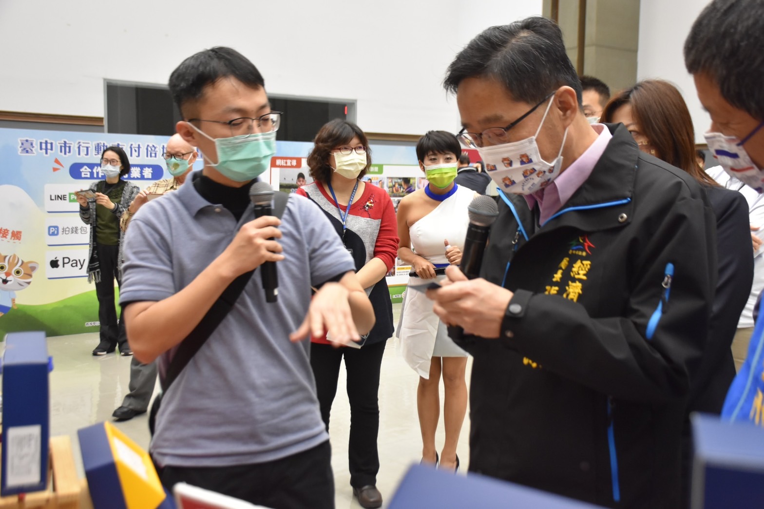 市府經發局今(21)日舉辦台中市行動支付倍增計畫成果發表記者會,由經發局長張峯源宣布行動支付使用店家倍增成果,並邀請九大行動支付業者、50位計畫店家代表共同見證。經發局說明,隨著數位經濟發展,行動支付已成全球趨勢,加上疫情衝擊,越來越多民眾選擇無現金交易,根據金管會最新統計,全台行動支付使用人數已突破1,500萬大關,零接觸商機蓬勃發展,市府行動支付倍增計畫鼓勵店家及民眾多多使用行動支付交易,享「掃碼免接觸」、「付款少停留」及「交易享回饋」三大優點。