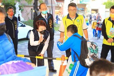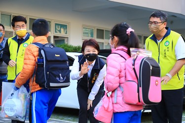 110學年度第2學期開學首日,台中市長盧秀燕今(11)一早赴松竹國小視察學校防疫情形,現場設置紅外線體溫量測設施及消毒噴霧,盧市長於校門口迎接師生,一一向魚貫入校的小朋友們道早安;她表示,台中疫情相對平穩,但為守護師生健康,校園仍採較嚴格的防疫措施,包括上課戴口罩、午餐用隔板等,且只要有1位師生確診即全校停課不停學14天,盼讓孩子安心學習。