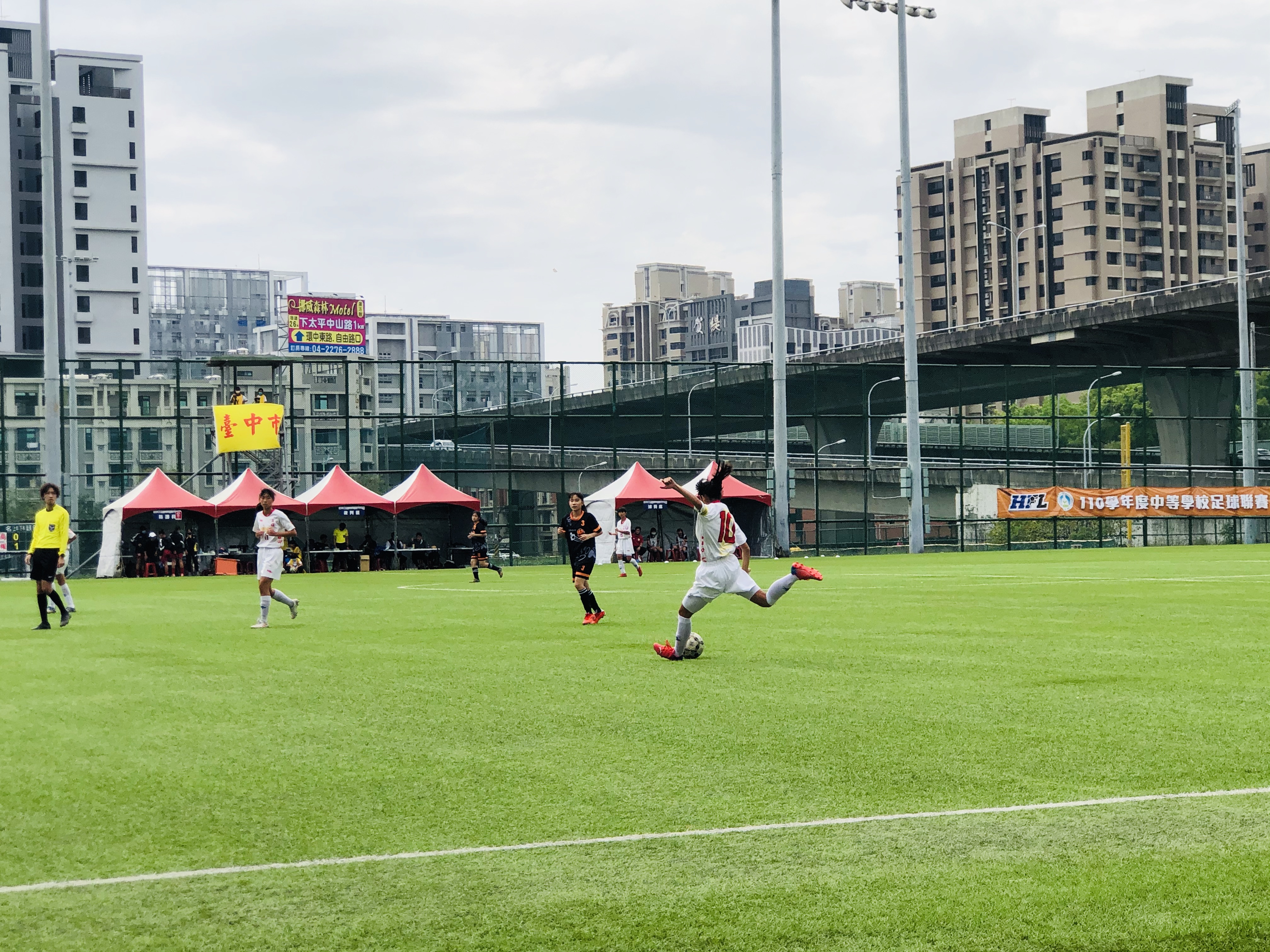 「110學年度中等學校足球聯賽11人制」火熱開踢!高、國女複賽第二階段昨(12)日起一連5天在太原足球場登場,台中市惠文高中女足、五權國中女足全力爭取勝利、直指后冠。今日五權國中對上花蓮縣花崗國中,台中市政府運動局也派員到場為選手加油打氣,感謝高中體總與市府運動局合作,搭起青少年足球競技平台,展現熱血足球女力。