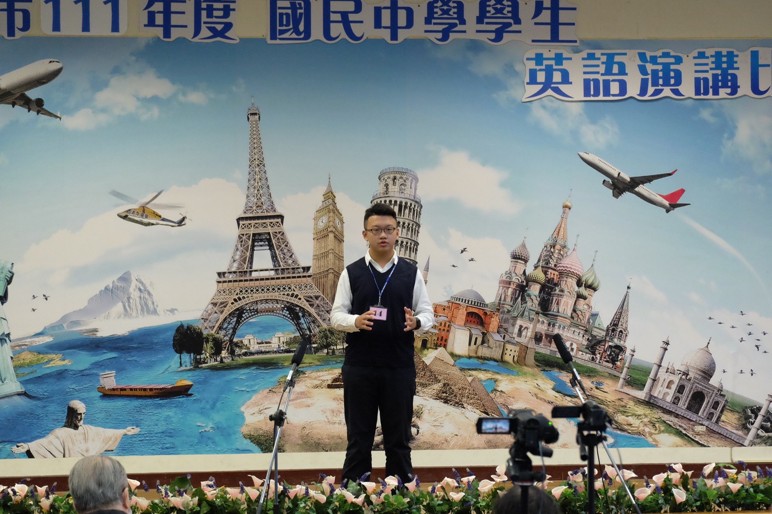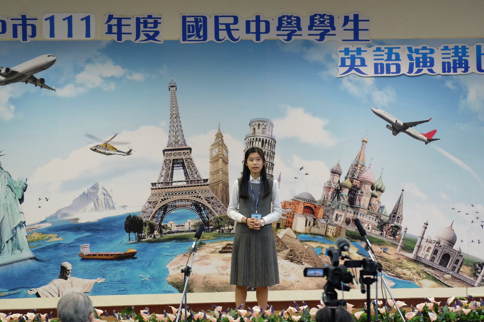 111年度台中市國中學生英語演講比賽今(8)日在光復國民中小學舉行,比賽分為4組競賽,由公私立國中各派1名學生代表,共82人參賽,藉由分組競賽方式,讓學生展現學習成果,並讓各校彼此交流觀摩學習;教育局專門委員郭明洲到場打氣表示,市長盧秀燕重視學生英語能力,這幾年國中小聘用外籍教師數比108年增加4倍,達126人,繼續維持全國第一。