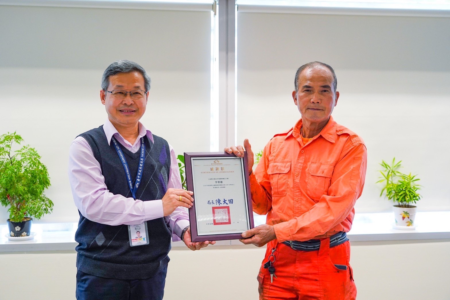 陳局長表示,道路修鋪是很耗費時間及體力的工作,每趟出勤往往需要長時間作業;非常感謝道路修補志工在新冠肺炎(COVID-19)疫情嚴峻期間仍堅守崗位,默默參與道路坑洞修補,提供安心用路環境,減少交通事故發生。