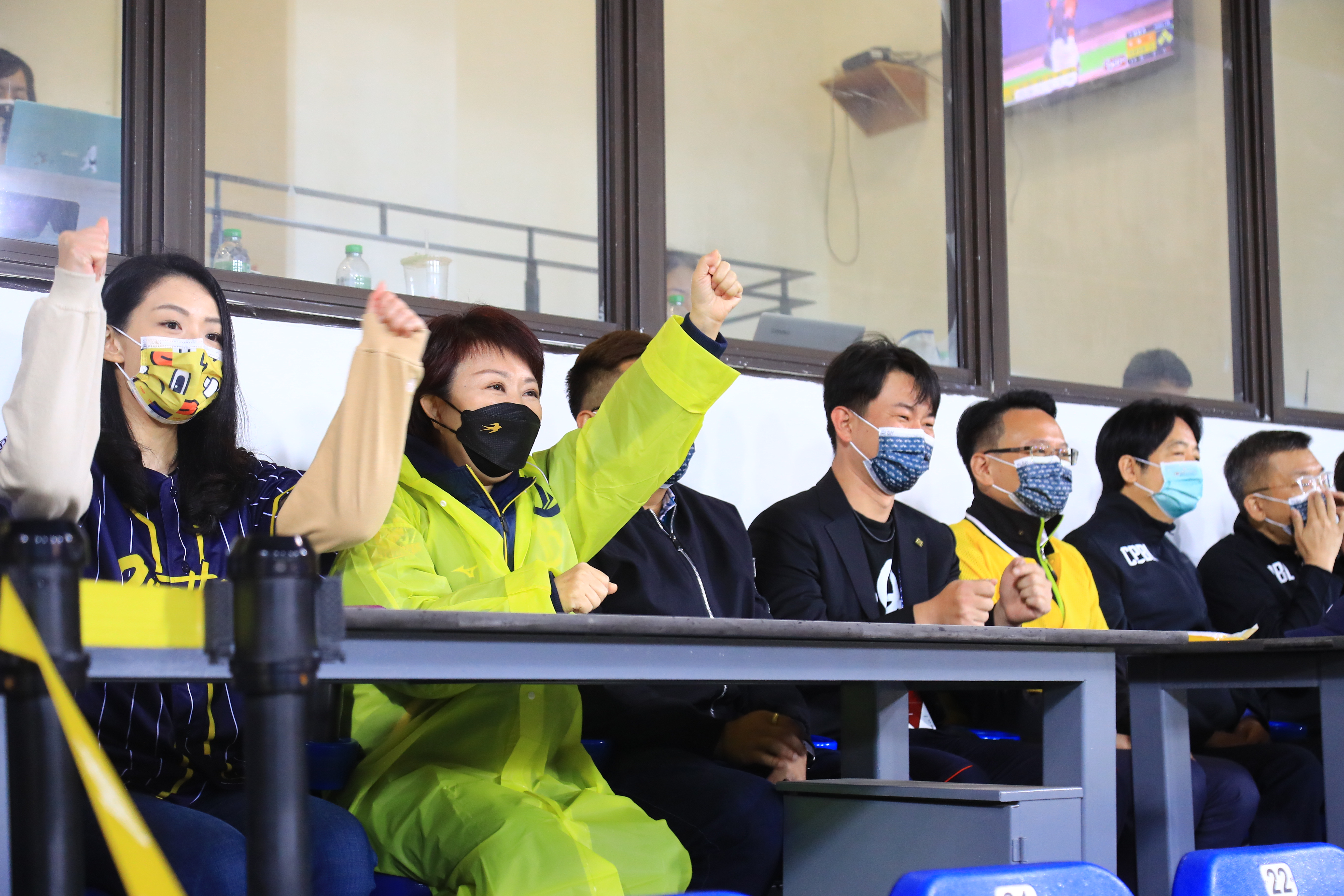 中華職棒33年例行賽今(2)日在台中洲際棒球場開打,由去年冠軍中信兄弟迎戰統一獅!台中市長盧秀燕今日不畏風雨,在市府運動局長李昱叡陪同下到場觀戰,副總統賴清德也以行動力挺,即便今日雨勢極大,現場仍湧進上萬球迷到場支持。盧市長指出,天氣不佳但球迷很多,她深受感動,「我們有信心會二連霸封王!」,屆時盼邀請賴副總統也前來參加封王大遊行。