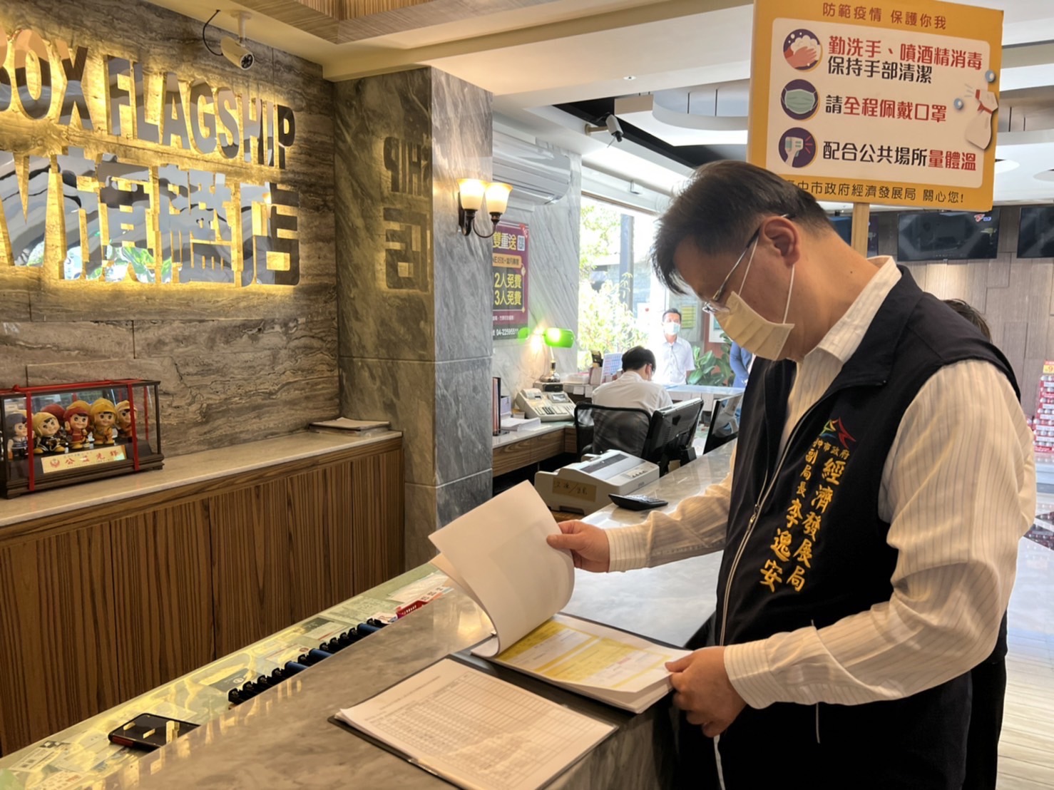 有鑑於本土確診案例連續四日突破百例、各地疫情升溫,台中市政府全力戒備,今(5)日再度由經發局副局長李逸安率隊前往銀櫃KTV旗艦店,市府未來也將持續針對舞廳、酒家、酒吧、夜店等特定娛樂場所查核,以降低疫情傳播風險,共同守護大家健康。
