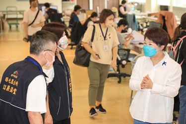 市長盧秀燕今(27)日前往西屯區公所關懷中心視察,除為防疫同仁打氣