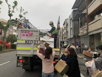 東勢區清潔隊長羅梅春表示,隊員們平日默默行善,每月小額捐款,送賣相不佳的蔬果給慈善團體等,不僅能做好事,也避免浪費剩餘的蔬果,這份知恩惜福的心意,到了母親節,同仁也希望對媽媽們表達感恩,自今日起連續3天於資收車後方懸掛大朵康乃馨並黏貼「母親節快樂」,感謝全天下的母親無私無我的付出。