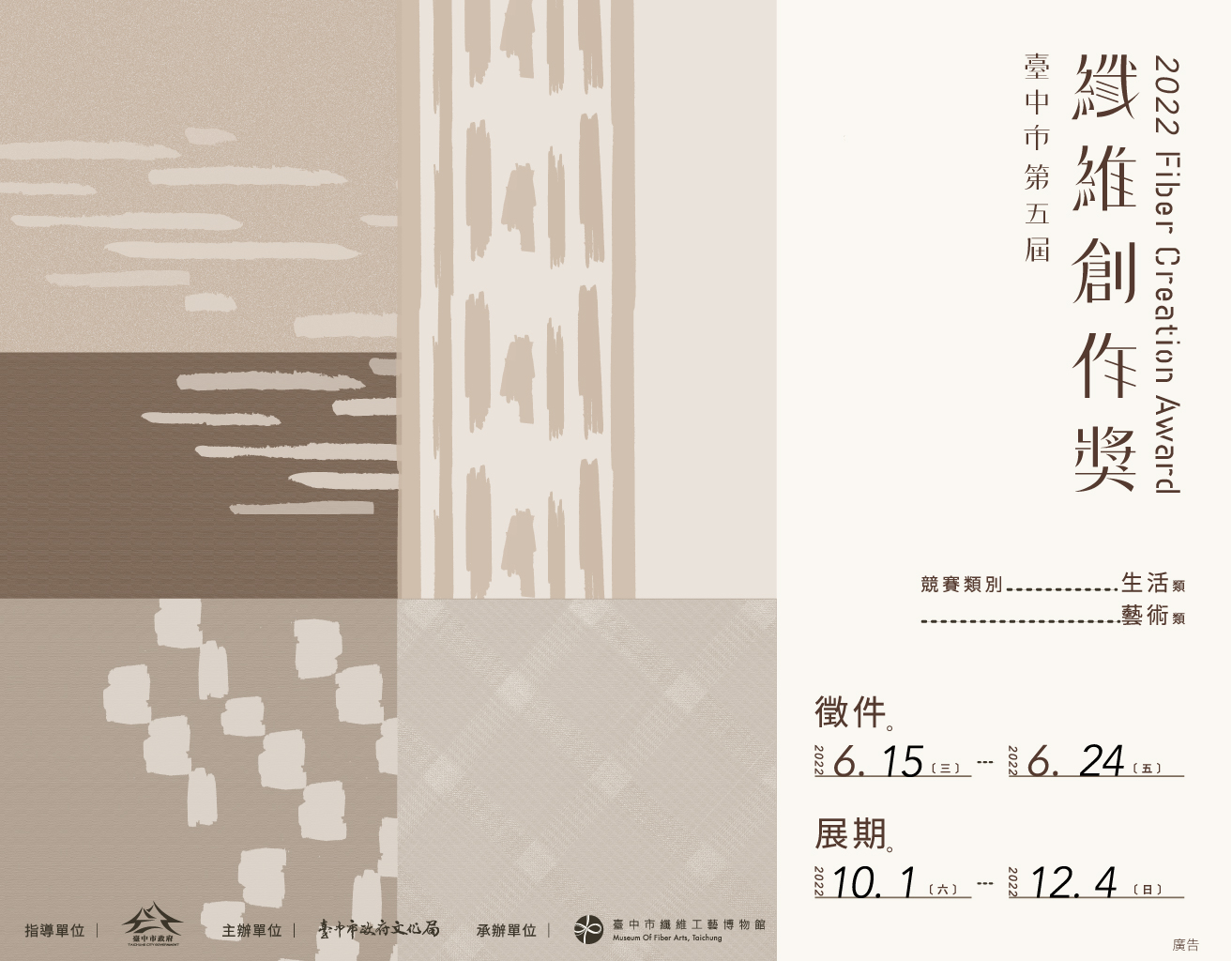 纖博館指出,「第五屆纖維創作獎」自6月15日至24日受理報名,預定8月25日公布獲獎名單,10月在纖維工藝博物館舉行盛大的頒獎典禮,得獎作品將展出至12月。凡具中華民國國籍的個人或團體皆可報名參賽,有關徵件簡章下載及歷屆得獎作品,可至纖博館官網 (https://mofia.taichung.gov.tw/NewsList )查詢。