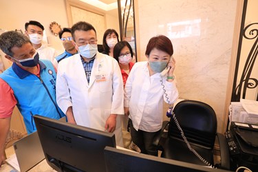 台中市政府收到中央配發的兒童疫苗後,各級學校、醫護、基層防疫人員皆全力協助兒童接種,許多醫護更不眠不休,犧牲假日執行疫苗施打作業,增加孩童保護力。市長盧秀燕今(3)日至施勝桓小兒科診所慰問,為醫護加油打氣,也關心民眾前來預約施打情況,她表示,感謝醫護及所有第一線防疫人員從疫情以來的辛勞,他們是守護城市的英雄,祝大家端午節健康平安。