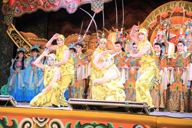 盧市長說明,今年的傳統藝術巡演,市府邀請文化部台灣品牌團隊、扶植團隊及台中市優質團隊,包括九天民俗技藝團、唐美雲歌仔戲團、明華園戲劇總團及日字團等,明華園戲劇總團是台灣最受歡迎的本土劇團之一,也是她最愛的團隊之一,今晚由明華園小生孫翠鳳領銜主演為觀眾帶來經典戲曲《劉全進瓜》。